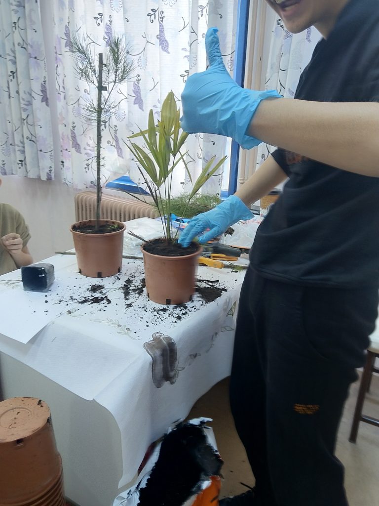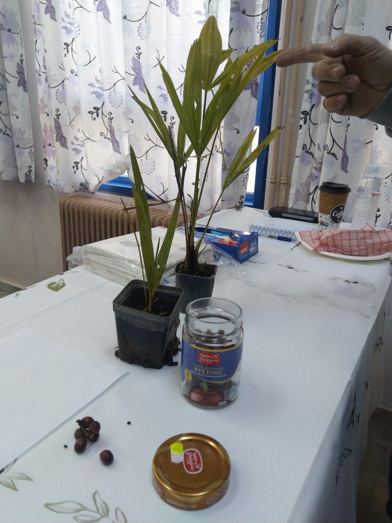 Ο ίδιος έφερε στο σχολείο και έδειξε στα παιδιά σπόρους και δείγματα φυτών σε διάφορα στάδια της ζωής τους, περιγράφοντας με άμεσο και παραστατικό τρόπο τη διαδικασία της δενδροφύτευσης, ενδεχόμενες απειλές για την υγεία των φυτών και τρόπους αντιμετώπισής τους. Χρησιμοποίησε παραδείγματα με αναφορές σε διάφορα είδη φυτών και δέντρων, δίνοντας ενδιαφέρουσες πληροφορίες για την ανάπτυξή τους με βάση τις απορίες των μαθητών/μαθητριών. Τέλος, ο κ. Πορφυράκης πρόσφερε σε όλους/όλες τους/τις μαθητές/μαθήτριες εξοπλισμό, γλαστράκια και μικρούς φοίνικες ώστε το κάθε παιδί να συμμετέχει με βιωματικό τρόπο στη διαδικασία της μεταφύτευσης ενός νεαρού δέντρου, το οποίο πήραν μαζί τους ως αναμνηστικό της δράσης.