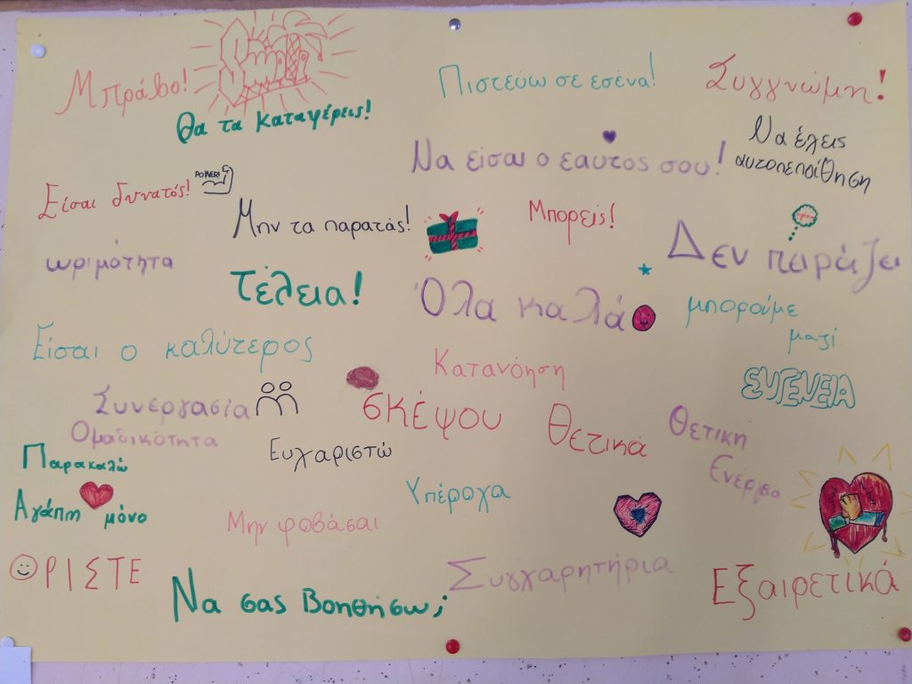 Παρατίθεται ως παράδειγμα καλής πρακτικής η αφίσα με θέμα τις «Ευγενικές Λέξεις» που δημιούργησαν από κοινού τα παιδιά για το πρόγραμμα, ώστε να ενθαρρύνουν και να εμψυχώνουν ο ένας τον άλλο σε κάθε δυσκολία! Ευχόμαστε από καρδιάς σε όλες και όλους να είναι πάντα πρότυπα ήθους και συμπεριφοράς στη σχολική και την ευρύτερη κοινότητα.