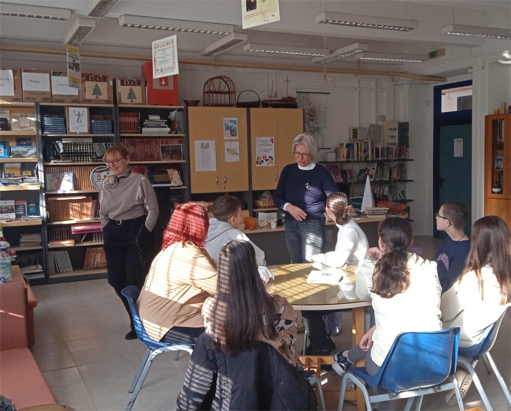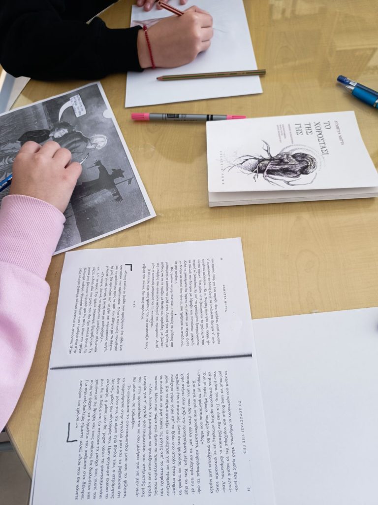 Μαθητές της Γ και Β τάξης συνεργάστηκαν , εκφράστηκαν και δημιούργησαν σε ένα εργαστήριο δημιουργικής γραφής με αφορμή το εφηβικό μυθιστόρημα “Το χοροστάσι της γης” της συγγραφέα Δήμητρας Μήττα(προέδρου της εταιρείας λογοτεχνών Θεσσαλονίκης). Ζωφράφισαν , έγραψαν δικά τους κείμενα ,ακολούθησαν μαζί της θεατρικό παιχνίδι.Στη δράση συμμετείχαν και οι φιλόλογοι του σχολείου.